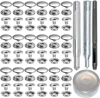 72pcs 15MM Fixation en acier inoxydable Bouton pression pour toile de bateau marin avec kit d'outils de poinçonnage Argent