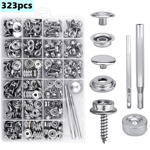 Kit de boutons à pression en toile pour bateau, 323 ou 3/8 pièces, en acier inoxydable, avec outil de réglage de qualité Marine, douille en métal