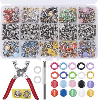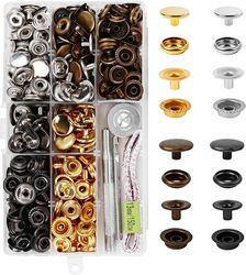 320 pièces Kit de boutons pression en laiton, 15 mm bouton pression robuste avec outils Kit de fixation à pression vêtements bateau toile